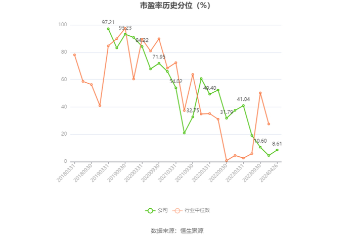 市盈率为负时,不显示当期分位数,会导致折线图中断。