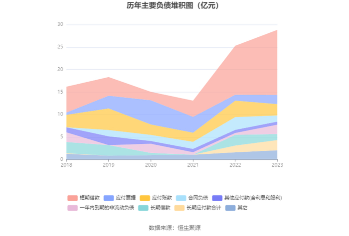 负债重大变化方面,截至2023年年末,公司短期借款较上年末增加32.99%,占公司总资产比重上升4.17个百分点;一年内到期的非流动负债较上年末增加408.61%,占公司总资产比重上升3.08个百分点;合同负债较上年末减少51.93%,占公司总资产比重下降3.44个百分点;应付账款较上年末减少31.16%,占公司总资产比重下降3.01个百分点。