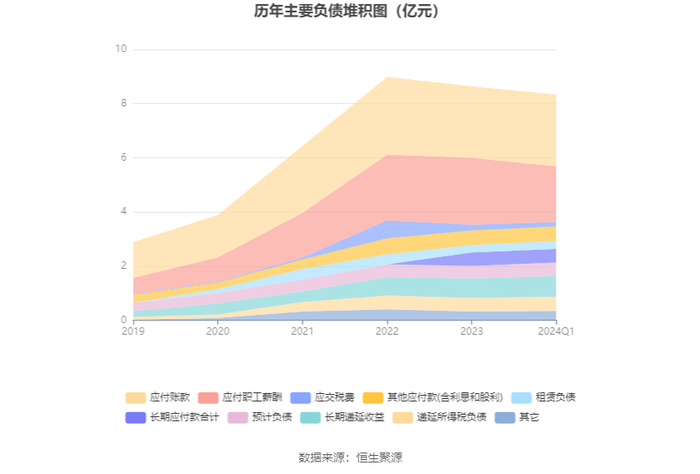 负债重大变化方面,截至2024年一季度末,公司应付职工薪酬较上年末减少16.83%,占公司总资产比重下降0.94个百分点;预计负债较上年末增加10.18%,占公司总资产比重上升0.08个百分点;应交税费较上年末减少21.88%,占公司总资产比重下降0.10个百分点;长期递延收益较上年末增加5.94%,占公司总资产比重上升0.07个百分点。