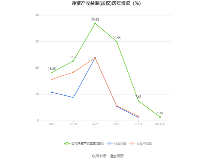 数据显示,2024年第一季度公司加权平均净资产收益率为1.40%,较上年同期增长0.53个百分点;公司2024年第一季度投入资本回报率为1.14%,较上年同期增长0.54个百分点。