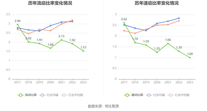 2023年,公司流动比率为1.53,速动比率为1.00。