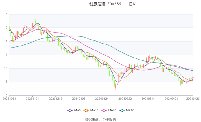 以4月26日收盘价计算,创意信息目前市盈率(TTM)约为-11.18倍,市净率(LF)约为2.77倍,市销率(TTM)约为3.17倍。