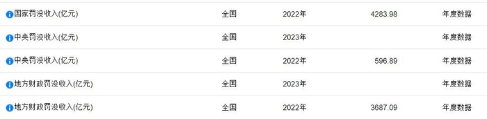 国家统计局公开的罚没收入与非税收入具体数据截图