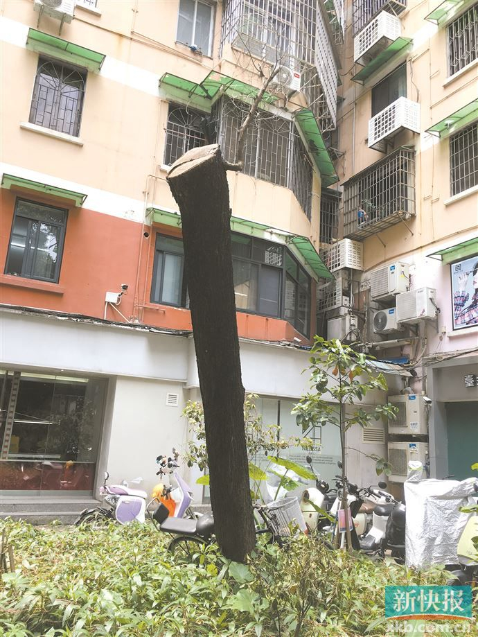 小区内三四层楼高的树 被邻居锯掉四分之三的树干