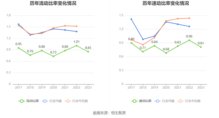 2023年,公司流动比率为0.85,速动比率为0.81。