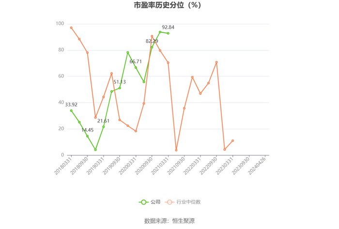 市盈率为负时,不显示当期分位数,会导致折线图中断。