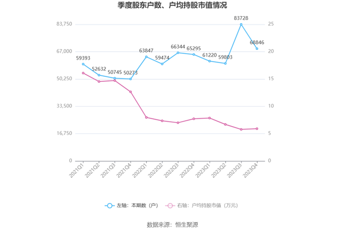筹码集中度方面,截至2023年年末,公司股东总户数为6.88万户,较三季度末下降了1.49万户,降幅17.77%;户均持股市值由三季度末的5.79万元上升至5.92万元,增幅为2.25%。