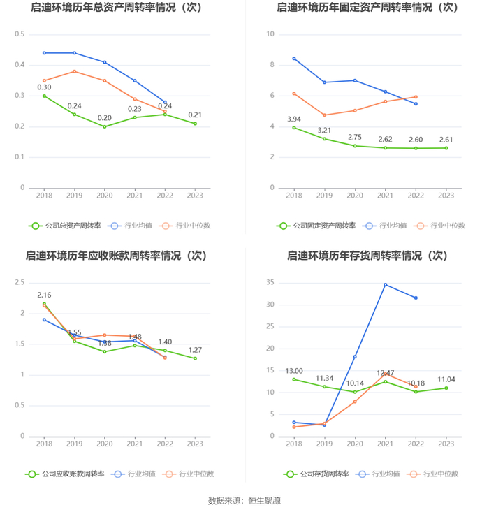 数据统计显示,启迪环境近三年营业总收入复合增长率为-14.51%,在综合环境治理行业已披露2023年数据的10家公司中排名第9。近三年净利润复合年增长率为-0.28%,排名5/10。