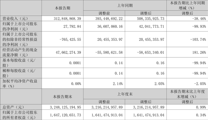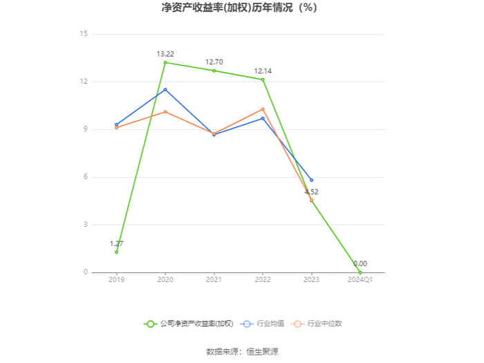 数据显示,2024年第一季度公司加权平均净资产收益率为0.00%,较上年同期下降2.05个百分点;公司2024年第一季度投入资本回报率为0.14%,较上年同期下降1.36个百分点。