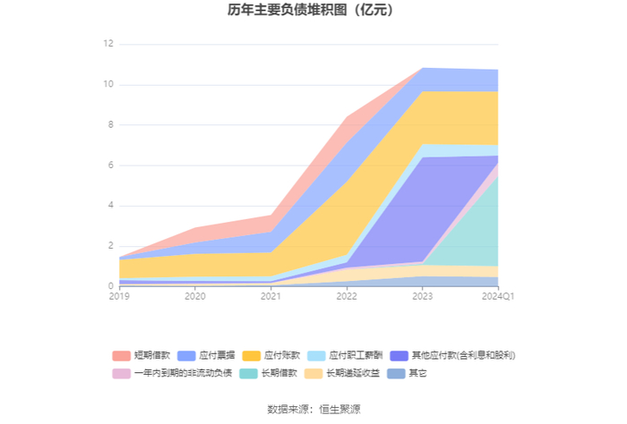 负债重大变化方面,截至2024年一季度末,公司其他应付款(含利息和股利)较上年末减少93.43%,占公司总资产比重下降15.02个百分点;长期借款较上年末增加7997.33%,占公司总资产比重上升13.66个百分点;一年内到期的非流动负债较上年末增加491.57%,占公司总资产比重上升1.66个百分点;应付职工薪酬较上年末减少18.72%,占公司总资产比重下降0.39个百分点。
