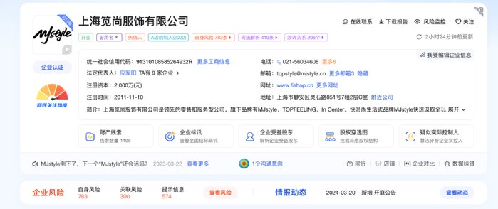 值得一提的是,MJstyle品牌创始人为张雨绮前夫袁巴元。2022年5月,袁巴元卸任笕尚服饰法定代表人、经理。