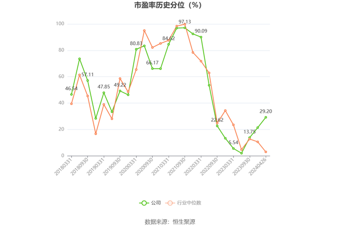 市盈率为负时,不显示当期分位数,会导致折线图中断。