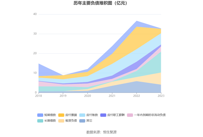负债重大变化方面,截至2023年年末,公司应付票据较上年末减少80.49%,占公司总资产比重下降8.94个百分点;长期借款较上年末增加242.06%,占公司总资产比重上升8.33个百分点;租赁负债较上年末增加199.70%,占公司总资产比重上升4.58个百分点;短期借款较上年末减少93.40%,占公司总资产比重下降2.78个百分点。