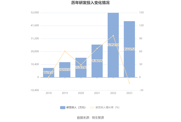 2023年全年,公司研发投入金额为4.52亿元,同比下降12.95%;研发投入占营业收入比例为12.33%,相比上年同期上升4.95个百分点。