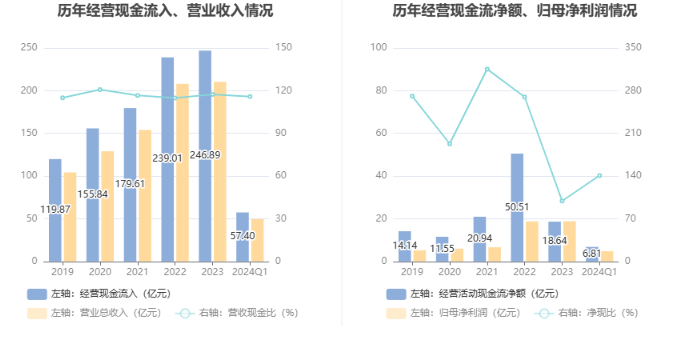 2024年第一季度,公司营业收入现金比为115.88%,净现比为140.89%。