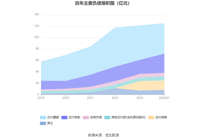 负债重大变化方面,截至2024年一季度末,公司应付账款较上年末增加36.67%,占公司总资产比重上升3.81个百分点;应付票据较上年末减少11.78%,占公司总资产比重下降4.72个百分点;应交税费较上年末增加61.25%,占公司总资产比重上升0.39个百分点;其他应付款(含利息和股利)较上年末增加11.61%,占公司总资产比重上升0.21个百分点。