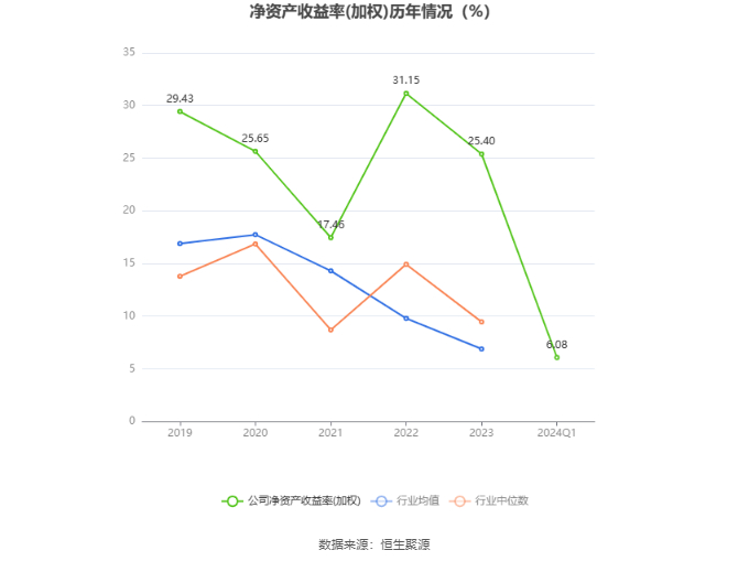 数据显示,2024年第一季度公司加权平均净资产收益率为6.08%,较上年同期下降0.64个百分点;公司2024年第一季度投入资本回报率为4.31%,较上年同期下降0.35个百分点。