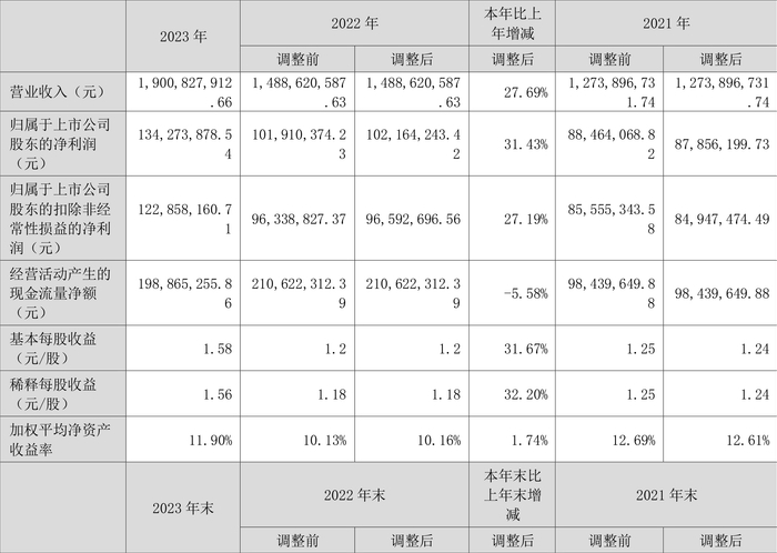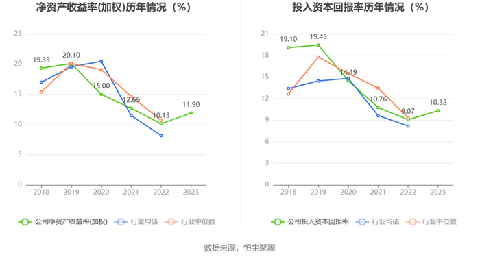 数据显示,2023年公司加权平均净资产收益率为11.90%,较上年同期增长1.77个百分点;公司2023年投入资本回报率为10.32%,较上年同期增长1.25个百分点。