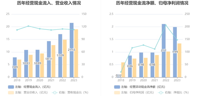 2023年,公司营业收入现金比为113.38%,净现比为148.10%。