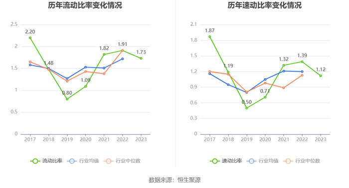 2023年,公司流动比率为1.73,速动比率为1.12。