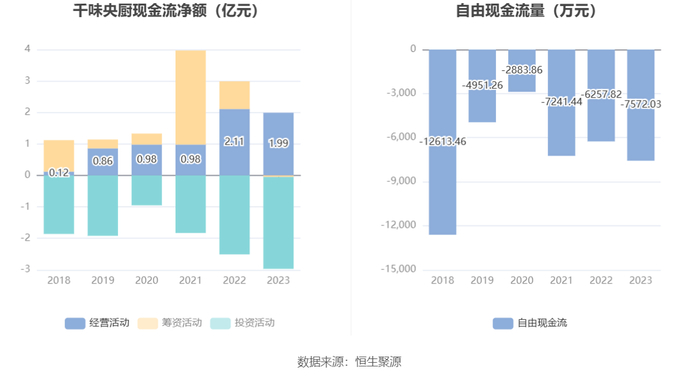 进一步统计发现,2023年公司自由现金流为-7572.03万元,上年同期为-6257.82万元。