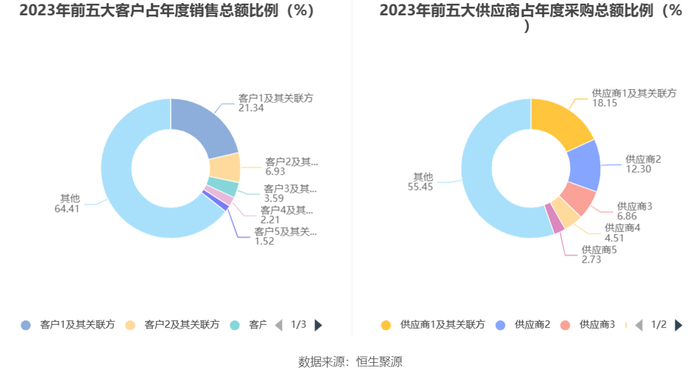 报告期内,公司前五大客户合计销售金额6.74亿元,占总销售金额比例为35.59%,公司前五名供应商合计采购金额4.61亿元,占年度采购总额比例为44.55%。