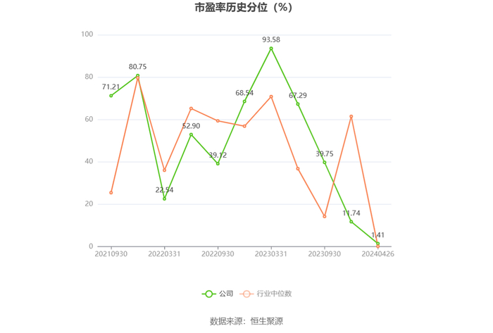 市盈率为负时,不显示当期分位数,会导致折线图中断。