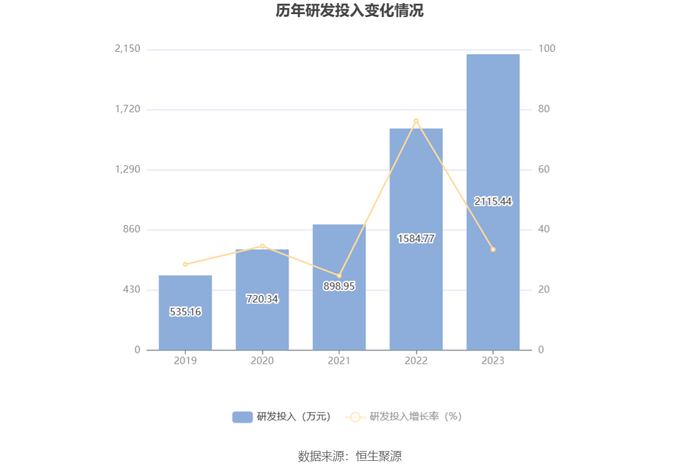 2023年全年,公司研发投入金额为2115.44万元,同比增长33.49%;研发投入占营业收入比例为1.11%,相比上年同期上升0.05个百分点。此外,公司全年研发投入资本化率为0。