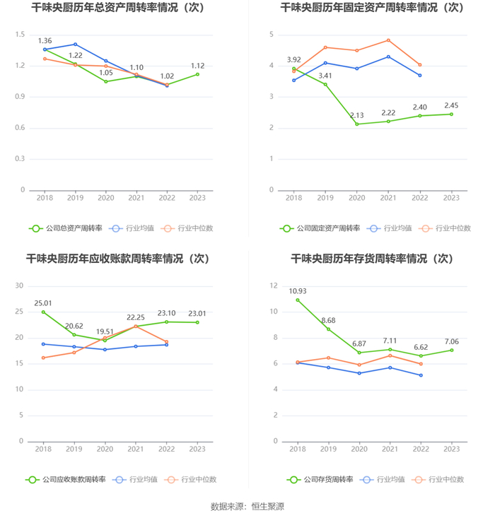 营运能力方面,2023年,公司公司总资产周转率为1.12次,上年同期为1.02次(2022年行业平均值为1.01次,公司位居同行业6/11);固定资产周转率为2.45次,上年同期为2.40次(2022年行业平均值为3.70次,公司位居同行业11/11);公司应收账款周转率、存货周转率分别为23.01次、7.06次。