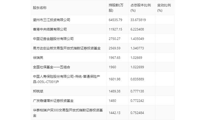 一季报显示,2024年一季度末公司十大流通股东中,新进股东为华泰柏瑞沪深300交易型开放式指数证券投资基金,取代了上年末的张万镇。在具体持股比例上,香港中央结算有限公司、易方达创业板交易型开放式指数证券投资基金、中国人寿保险股份有限公司-传统-普通保险产品-005L-CT001沪持股有所上升,全国社保基金一一五组合、广发稳健增长证券投资基金持股有所下降。