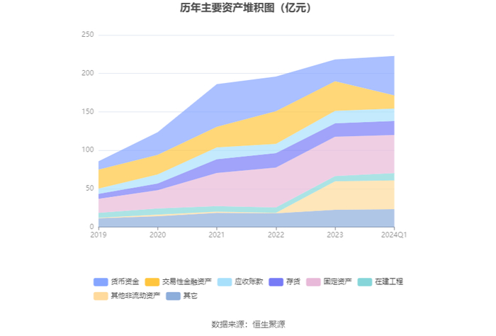 资产重大变化方面,截至2024年一季度末,公司货币资金较上年末增加80.35%,占公司总资产比重上升9.98个百分点;交易性金融资产较上年末减少55.10%,占公司总资产比重下降9.87个百分点;在建工程较上年末增加41.66%,占公司总资产比重上升1.21个百分点;固定资产较上年末减少2.89%,占公司总资产比重下降1.14个百分点。