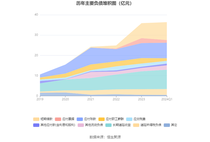 负债重大变化方面,截至2024年一季度末,公司应付职工薪酬较上年末减少51.93%,占公司总资产比重下降0.65个百分点;短期借款较上年末增加18.65%,占公司总资产比重上升0.55个百分点;应付票据较上年末减少44.81%,占公司总资产比重下降0.51个百分点;长期递延收益较上年末增加8.37%,占公司总资产比重上升0.25个百分点。