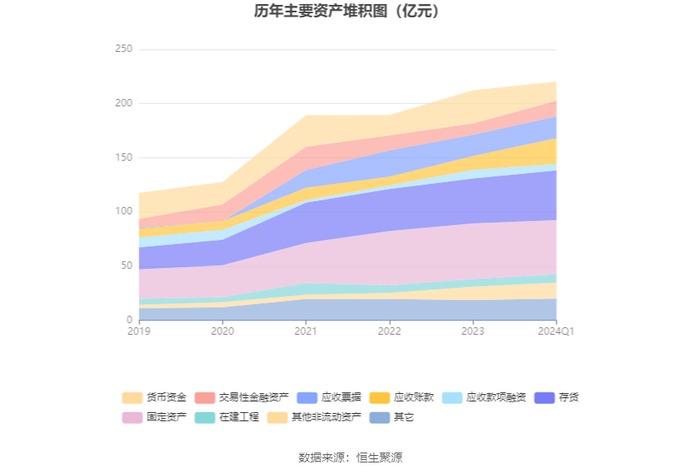 资产重大变化方面,截至2024年一季度末,公司货币资金较上年末减少42.29%,占公司总资产比重下降6.42个百分点;应收账款较上年末增加85.83%,占公司总资产比重上升4.77个百分点;交易性金融资产较上年末增加38.21%,占公司总资产比重上升1.64个百分点;固定资产较上年末减少2.44%,占公司总资产比重下降1.43个百分点。