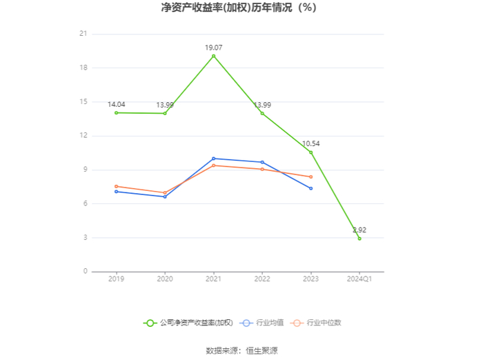 数据显示,2024年第一季度公司加权平均净资产收益率为2.92%,较上年同期增长0.06个百分点;公司2024年第一季度投入资本回报率为2.03%,较上年同期下降0.51个百分点。