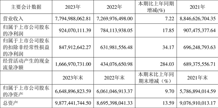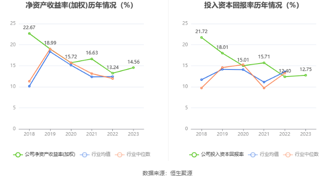 数据显示,2023年公司加权平均净资产收益率为14.56%,较上年同期增长1.32个百分点;公司2023年投入资本回报率为12.75%,较上年同期增长0.35个百分点。