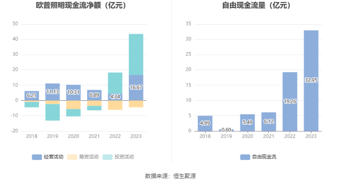 进一步统计发现,2023年公司自由现金流为32.95亿元,相比上年同期增长71.11%。