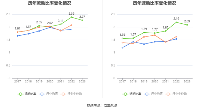 2023年,公司流动比率为2.27,速动比率为2.09。
