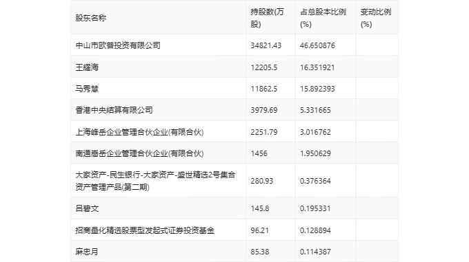 值得注意的是,根据年报数据,欧普照明13.21%股份处于质押状态。其中,第一大股东中山市欧普投资有限公司质押6073.00万股公司股份,占其全部持股的17.44%。