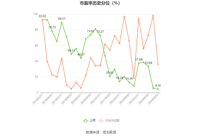 市盈率为负时,不显示当期分位数,会导致折线图中断。