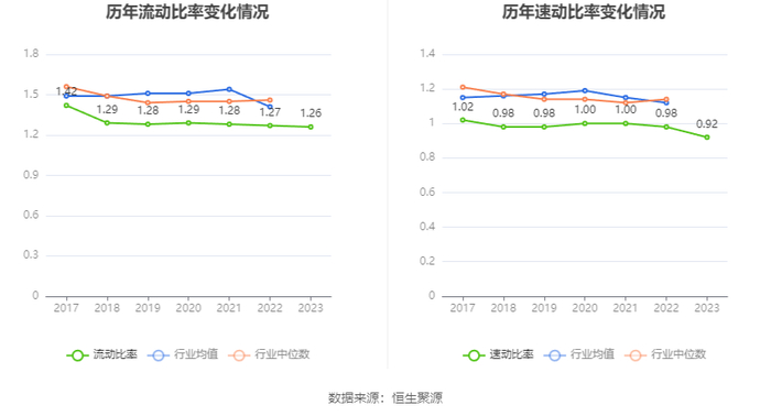 2023年,公司流动比率为1.26,速动比率为0.92。