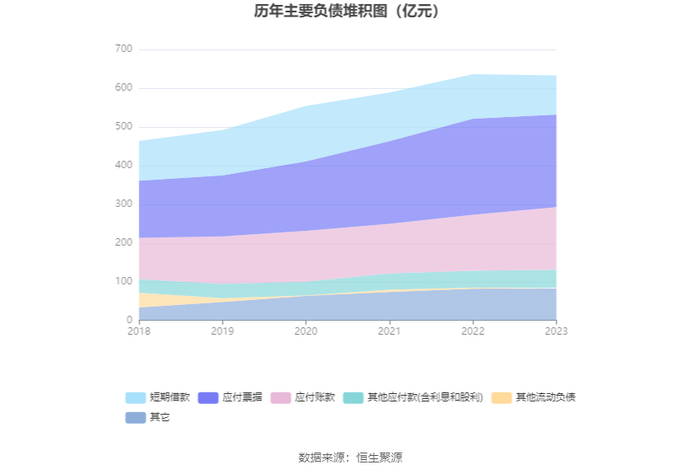 负债重大变化方面,截至2023年年末,公司应付账款较上年末增加12.02%,占公司总资产比重上升1.79个百分点;一年内到期的非流动负债较上年末增加297.95%,占公司总资产比重上升1.70个百分点;短期借款较上年末减少11.93%,占公司总资产比重下降1.54个百分点;应付票据较上年末减少3.76%,占公司总资产比重下降1.15个百分点。