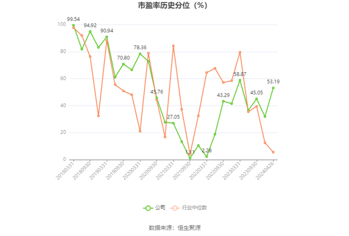 市盈率为负时,不显示当期分位数,会导致折线图中断。