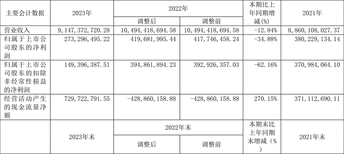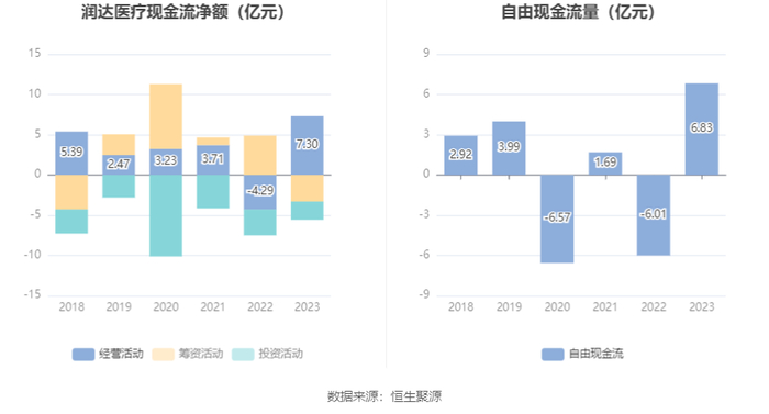 2023年,公司经营活动现金流净额为7.30亿元,同比增加11.59亿元;筹资活动现金流净额-3.31亿元,同比减少8.19亿元;投资活动现金流净额-2.27亿元,上年同期为-3.23亿元。