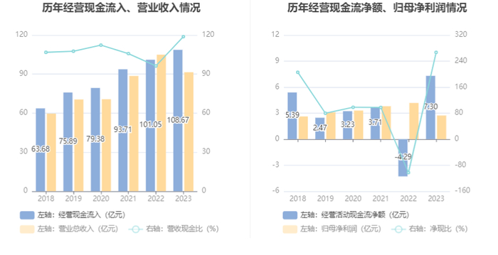 2023年,公司营业收入现金比为118.80%,净现比为267.01%。