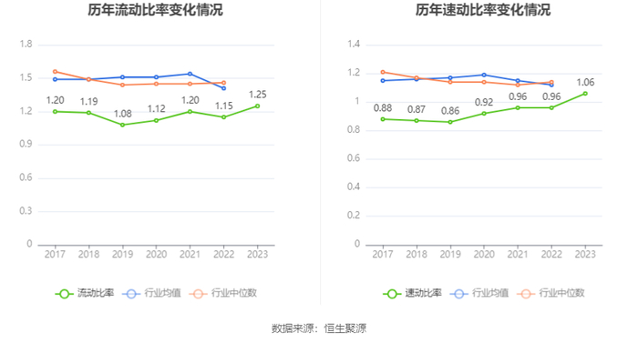 2023年,公司流动比率为1.25,速动比率为1.06。