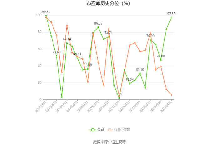市盈率为负时,不显示当期分位数,会导致折线图中断。