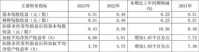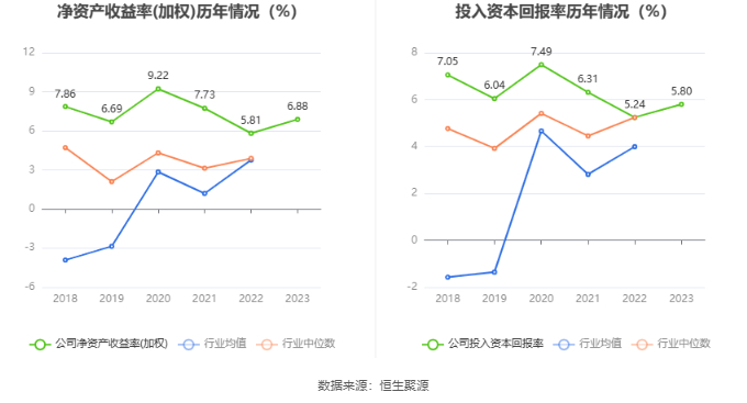 数据显示,2023年公司加权平均净资产收益率为6.88%,较上年同期增长1.07个百分点;公司2023年投入资本回报率为5.80%,较上年同期增长0.56个百分点。