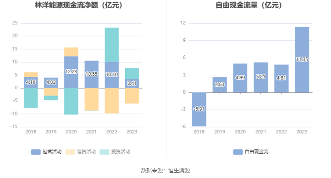 进一步统计发现,2023年公司自由现金流为11.35亿元,相比上年同期增长136.22%。