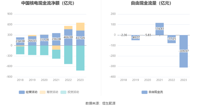 进一步统计发现,2023年公司自由现金流为-309.97亿元,上年同期为-77.25亿元。