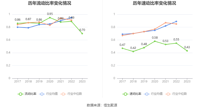 2023年,公司流动比率为0.70,速动比率为0.43。